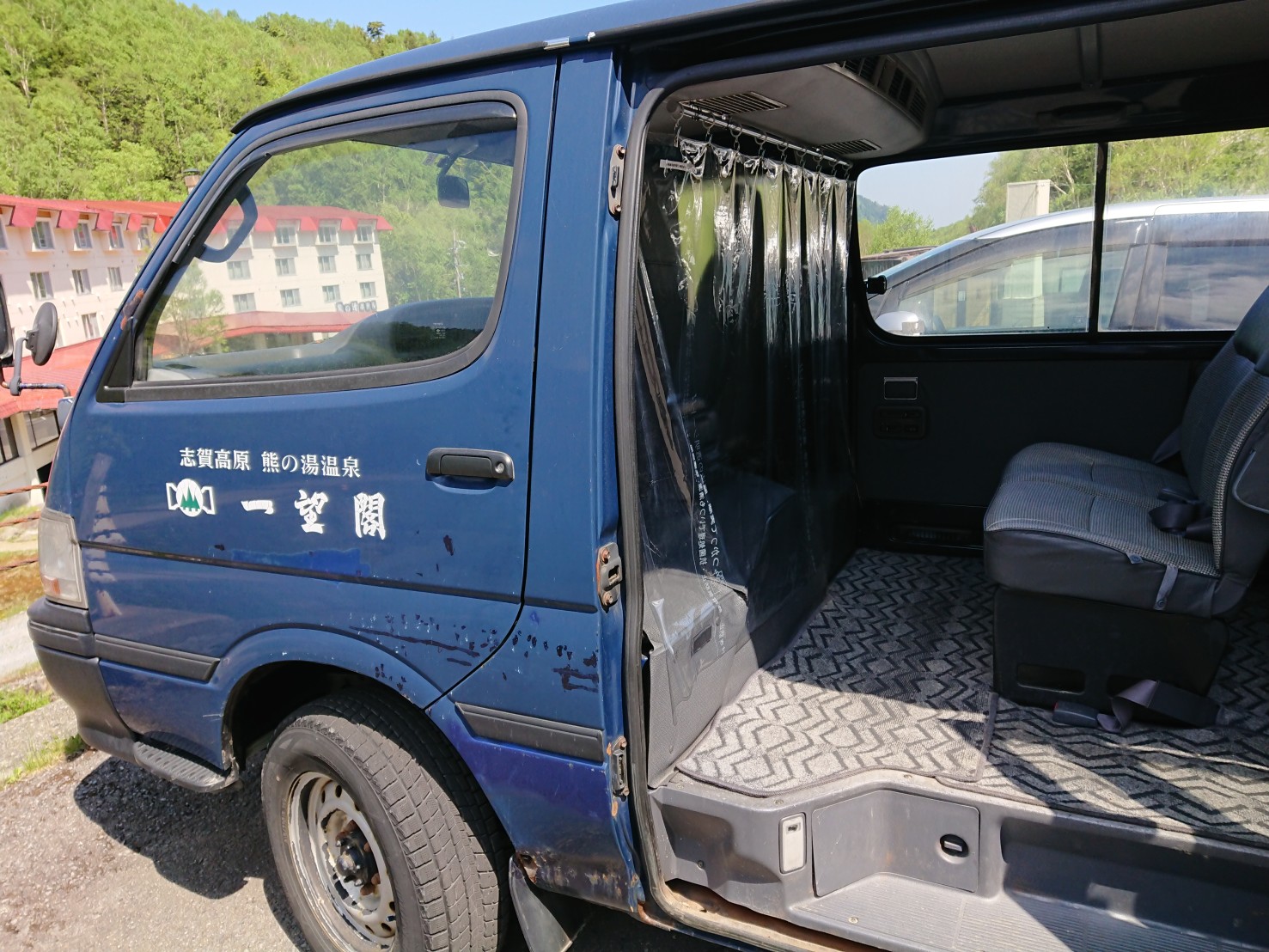 病院への搬送車両は飛沫防止スクリーンでスタッフと空間を分けています