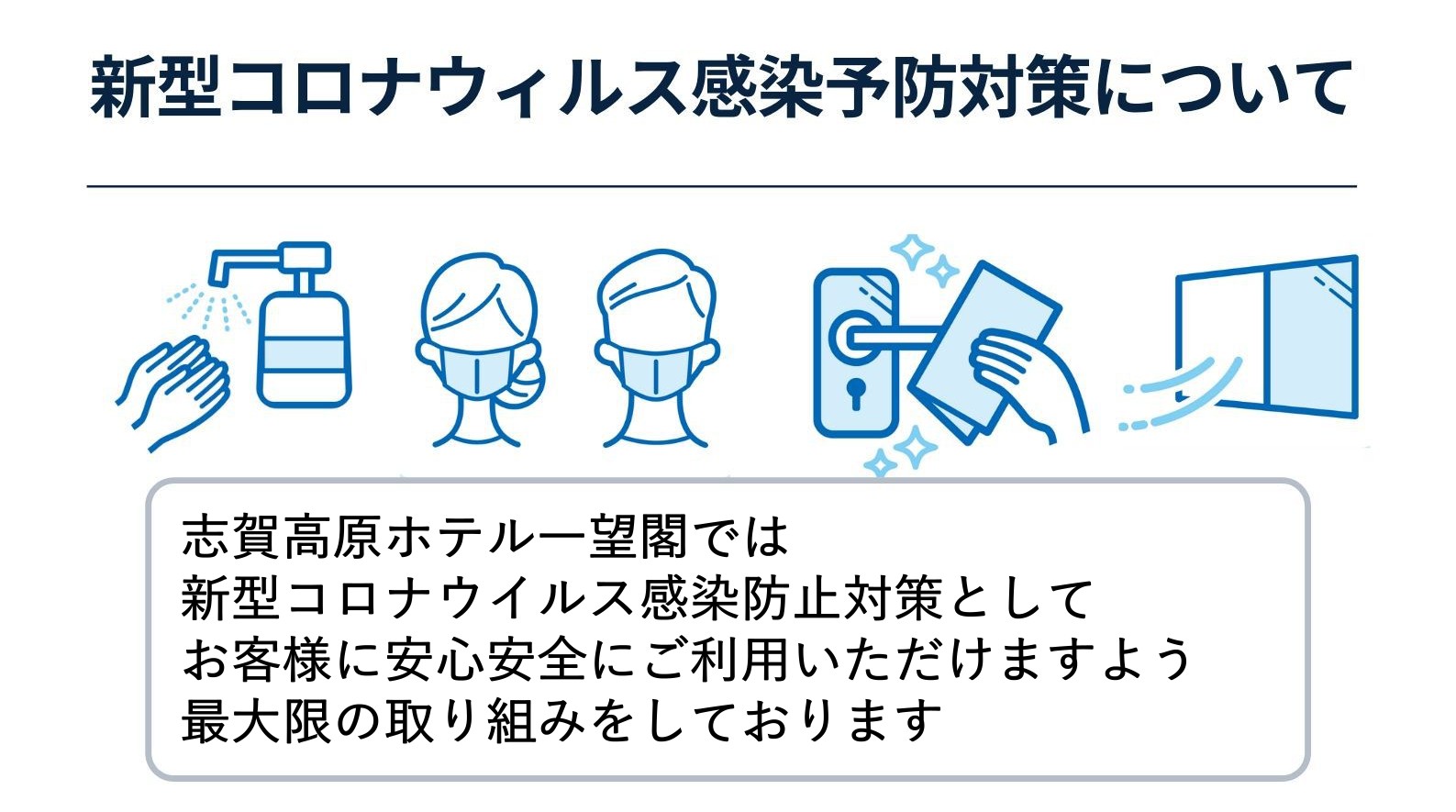 - 館内を定期的にふき取りなどの塩素・エタノール消毒、またオゾン殺菌機を大広間などのパブリック施設・レンタルスキー室を定期的に稼働しております。