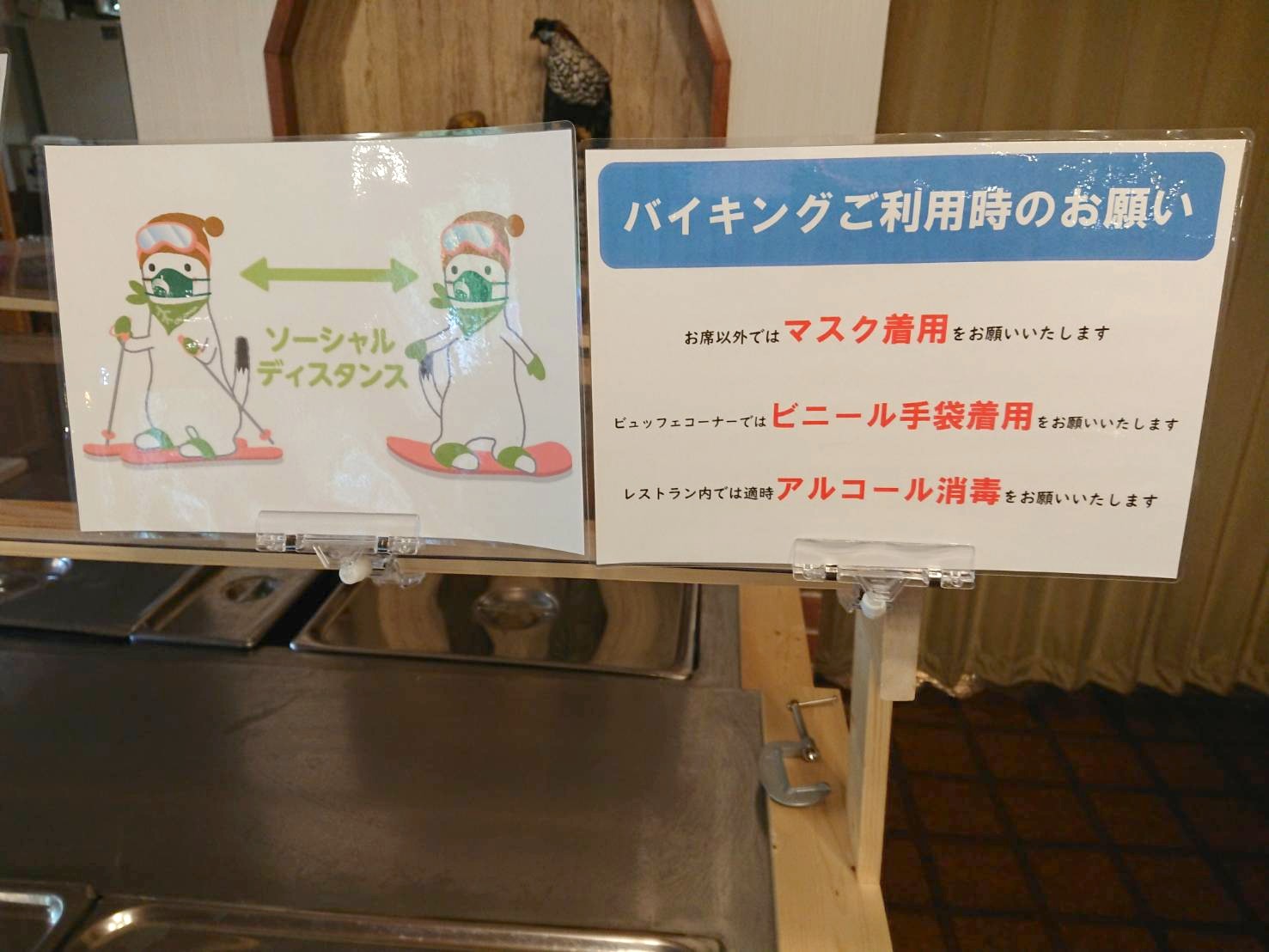 - お食事は会席の場合はフタつきお膳での提供。またスキーシーズン繁忙日のブッフェでは、防護シールドを設置したブッフェレーンで手袋・マスクの着用をお願いしております。